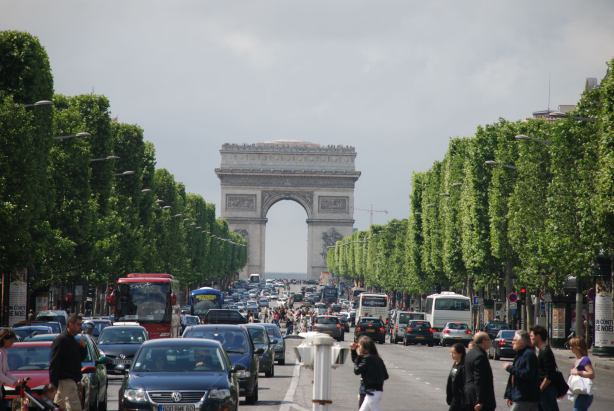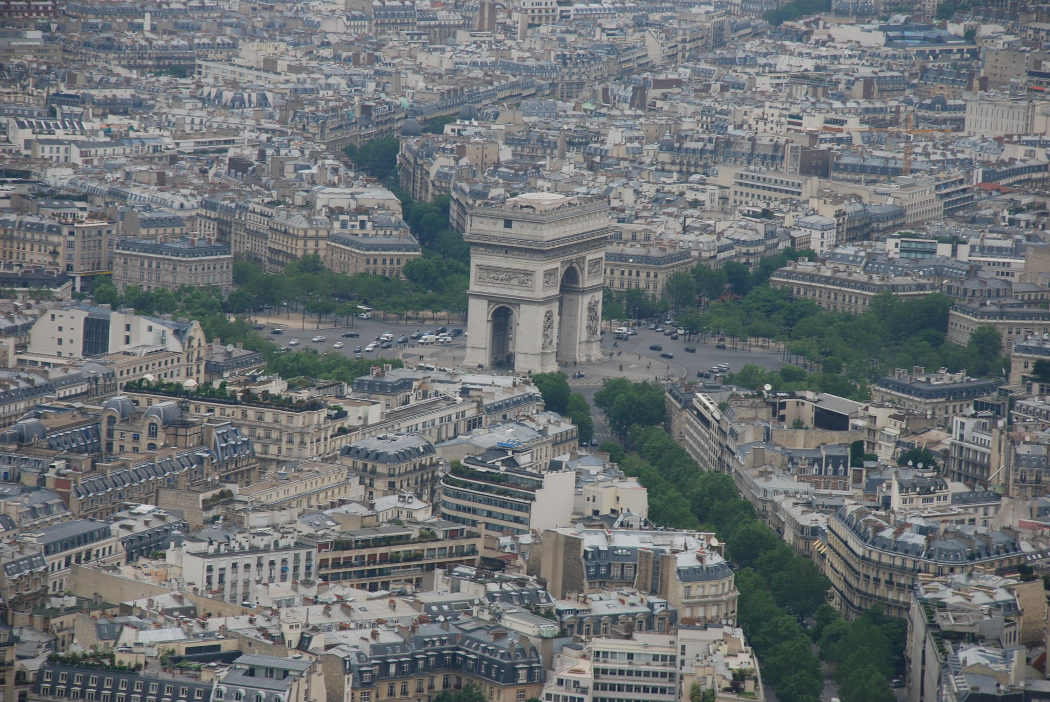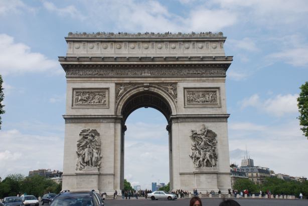 Our flight got in at 9 in the morning, an hour behind schedule. It was a cloudy morning with the sun venturing out timidly once in a while. The flight was quite comfortable and all of us could rest well. We showered and changed quickly and were soon off to some lunch and sight-seeing. We are staying very near to Champs Elysees, which is the most famous road in Paris, and are within walking distance of Arc de Triomphe and we wandered there after lunch. It was a nice walk and I quite enjoyed the weather, which was bracing. Sandhya and Bharath found it to be chilly and were soon in their jackets. We took several photos at the Arc de Triomphe and also went up the steps to its terrace. There are 284 steps to the top. Napoleon Bonaparte had started building this as memorial for his various victories but he did not finish it as he soon started losing some battles and even whole wars. It was later completed and dedicated as a memorial to an unknown soldier. It very much reminded me of India Gate, which is also dedicated to such a memory. Even the shape is a bit similar and the flame and wreaths are also there.