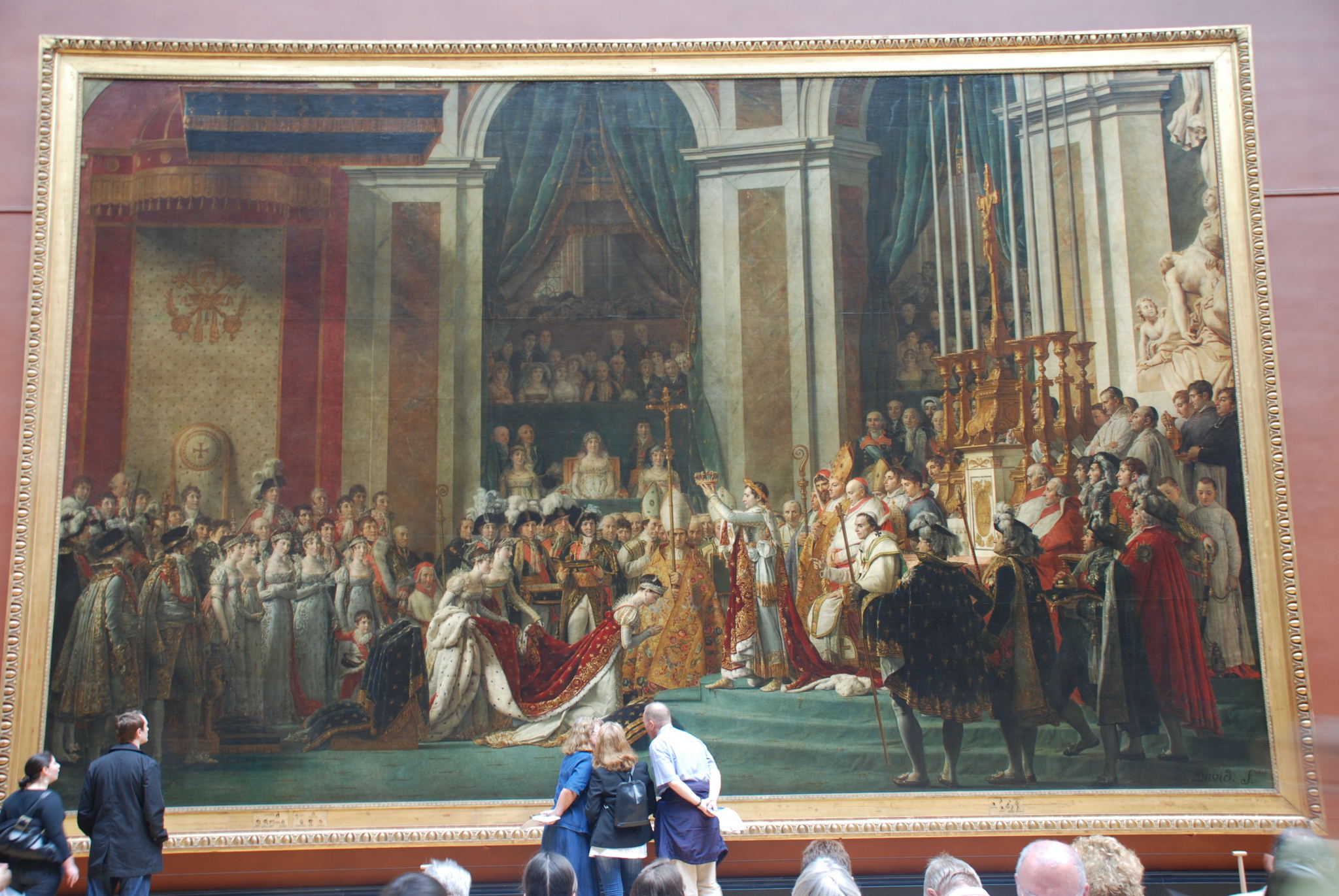 We then saw three paintings of note, one of which was a scene depicting the coronation of Napoleon at Notre Dame. This was commissioned by Napoleon himself and the interesting point was that the artist did not truthfully reproduce the scene – a prime example being the presence of Napoleon’s mother in the picture whereas she did not attend the ceremony in protest to her son calling himself an emperor and having a coronation and also as the ceremony included the coronation of Napoleon’s wife Josephine as well. I was impressed that Napoleon’s mother thought it unbecoming of her son to call himself emperor – a sure sign of how early democratic thought had started in France and to what depth it had penetrated. This is also drawn on a huge scale.