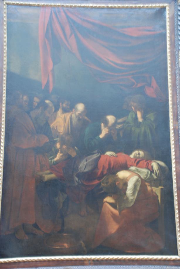 The next painting was one that caught my fancy and admiration – The Death of the Virgin by Caravaggio. Here the artist has depicted the scene of Holy Mary’s death – she is shown lying dead surrounded by some wise looking men. The beauty of the painting is that she is shown as a very normal and common woman, shorn of all divine trappings. In fact, the artist modeled the face off the corpse of a prostitute who had died around that time. The clergy had commissioned this painting and as can be easily understood, they did not appreciate the proletarian attitude of the painter and they rejected it outright. It seems it took the artist more than a decade to get back to public favour.