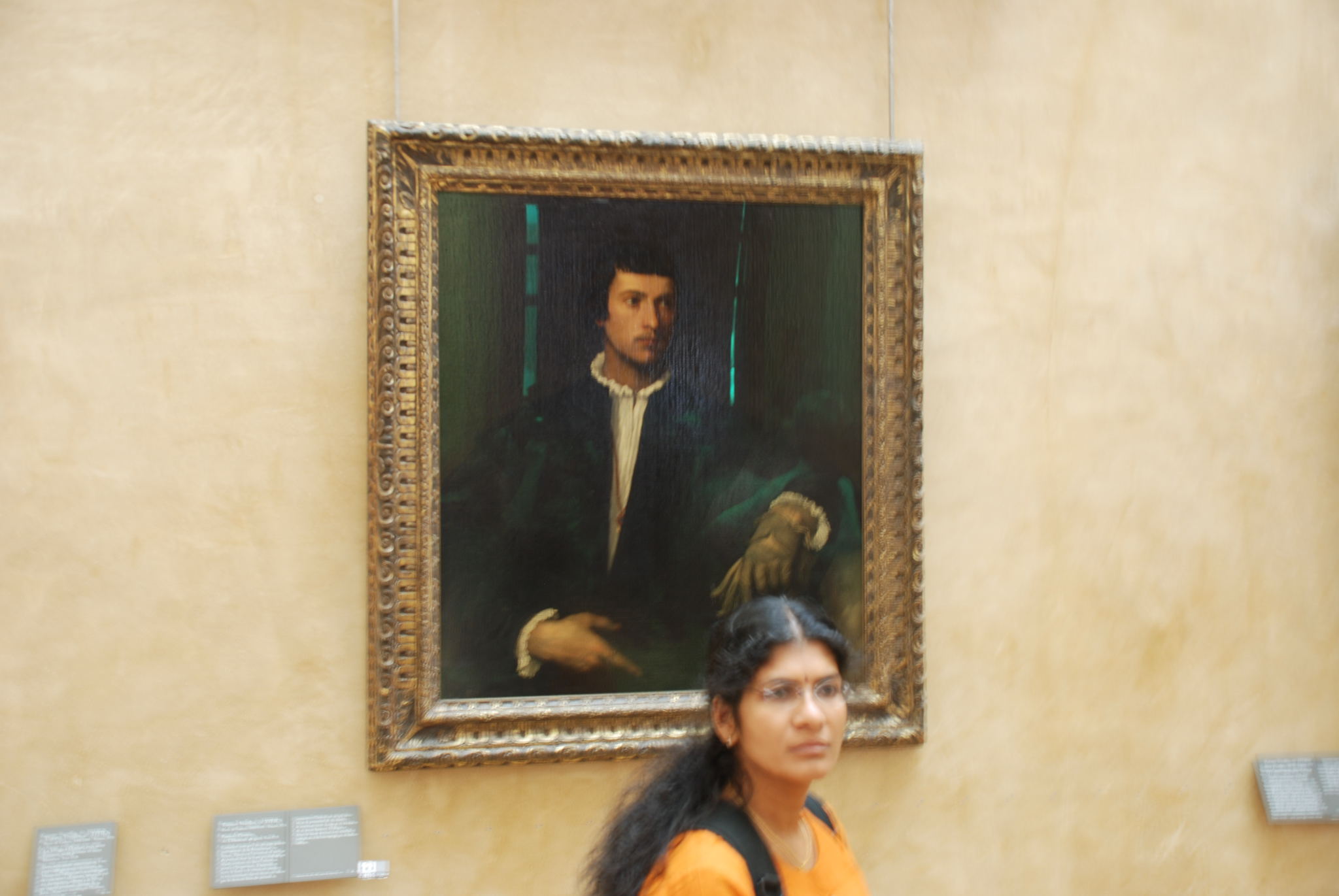 We were trying to compress as much as we could into the time available before Bharath’s patience ran out. So we focused on the paintings in the Denon wing, which housed Mona Lisa. There are three more such wings in Louvre and the Denon itself is spread over three floors, of which we only got to see one. One surprising point that I noticed was that all the explanations alongside of paintings were in French. For an international museum of Louvre’s standing, it would have been more becoming had they written the descriptions in English also. After all, English is the world language today – whether the French agree or not! Of course, we had rented out audio guides which were life savers in providing salient details about the more important works.