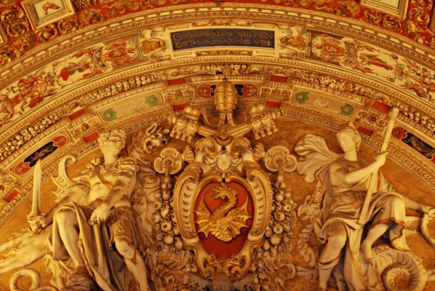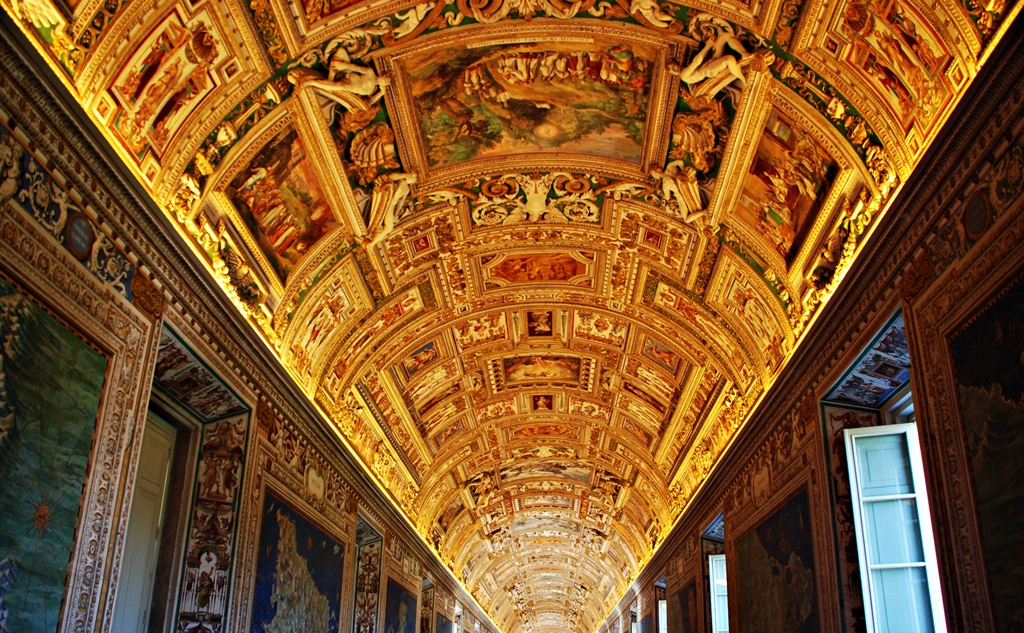 We did a whirlwind tour, pausing to take in views of some of the more important works. At some point we passed through the Gallery of maps, which had a splendid, ornate ceiling with rich carvings.