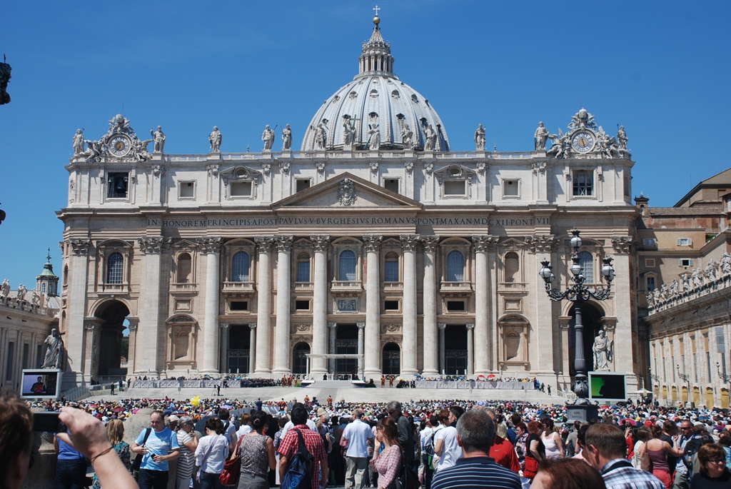 The facade of St. Peter’s Basilica is very impressive and has an interesting story behind it. St. Peter, who is considered to be the first Pope, was persecuted by Nero. It seems that Nero blamed Christians for the famous fire in Rome though some stories say that he had started the fire himself to bring down some old buildings so that he could start making better ones. Unable to face the persecution, St. Peter left Rome and on the night that he left Rome, he had a dream. He saw Christ going to Rome and he asked him “Domine, quo vadis?” (Lord, where are you going) to which, Christ replied that he was going to Rome to be crucified a second time. St. Peter got the message behind the dream and went back to Rome and he was duly crucified, killed and buried at Ager Vaticanus, a stadium of Nero. The first Christian Roman Emperor, Constantin, built a church here in the 4th Century in St. Peter’s memory. The church fell into disrepair after sometime and a restoration project was started in the 15th century and it took 150 years to complete. Many well known sculptors and architects were associated with the Basilica but the one that is most credited is Michelangelo, who rebuilt the dome.