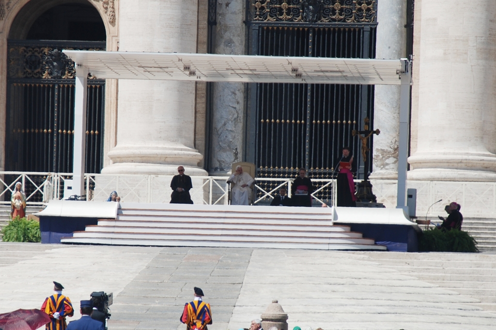 Every Wednesday, the Pope meets people at the St. Peter’s Square from 11 am and we landed smack in the middle of that when we exited the Vatican Museums. Some sort of a function was going on there with the Pope speaking at times along with some other priests. There was a huge gathering to witness that and they were all sitting patiently under the rather hot sun.