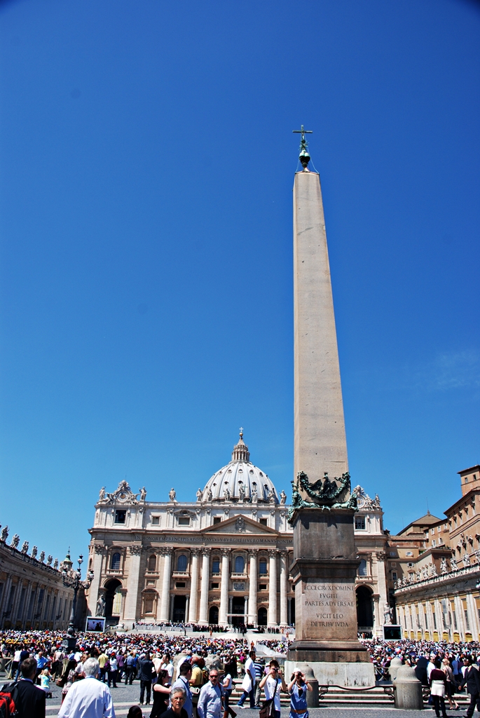 The square is very large and can easily hold tens of thousands of people. There is an obelisk right in the middle of the square and is supposed to have been used by Nero in one his circuses. The Egyptian obelisk seems to have been a favourite of the Roman Emperors.