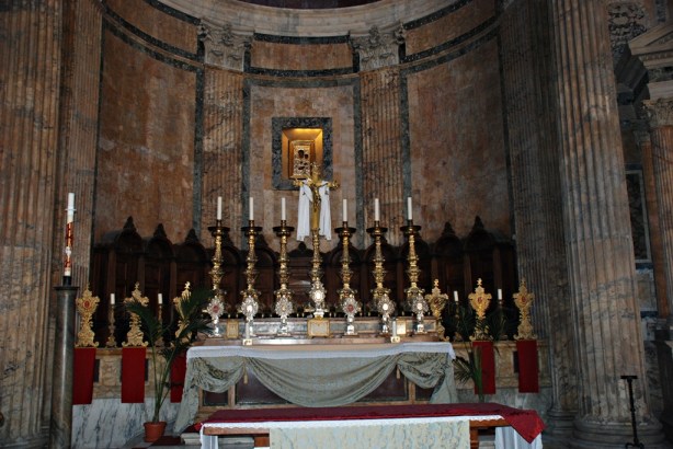 There are several important art pieces within the Pantheon including a 15th century statue of Christ on the Crucifix by Michelangelo, a 4th century image of the Virgin and the Child etc. The altar at the Pantheon is also an impressive sight.