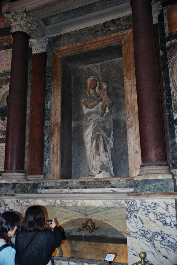 In the seventh century, Pantheon was donated to the Pope Boniface IV and that marked the transition of Pantheon into a church – it is now the church of St. Mary and the Martyrs. There are many illustrious personalities buried in the Pantheon – this is a consistent theme with churches wherein they seemed to bury dignitaries in churches. The tombs in Pantheon include those of the great artist Raphael, first king of unified Italy, Vittorio Emanuele II etc. Raphael’s tomb has a statue of the Virgin and the Child and it seems Raphael had specifically asked the sculptor to make the statue for his tomb, before his death.