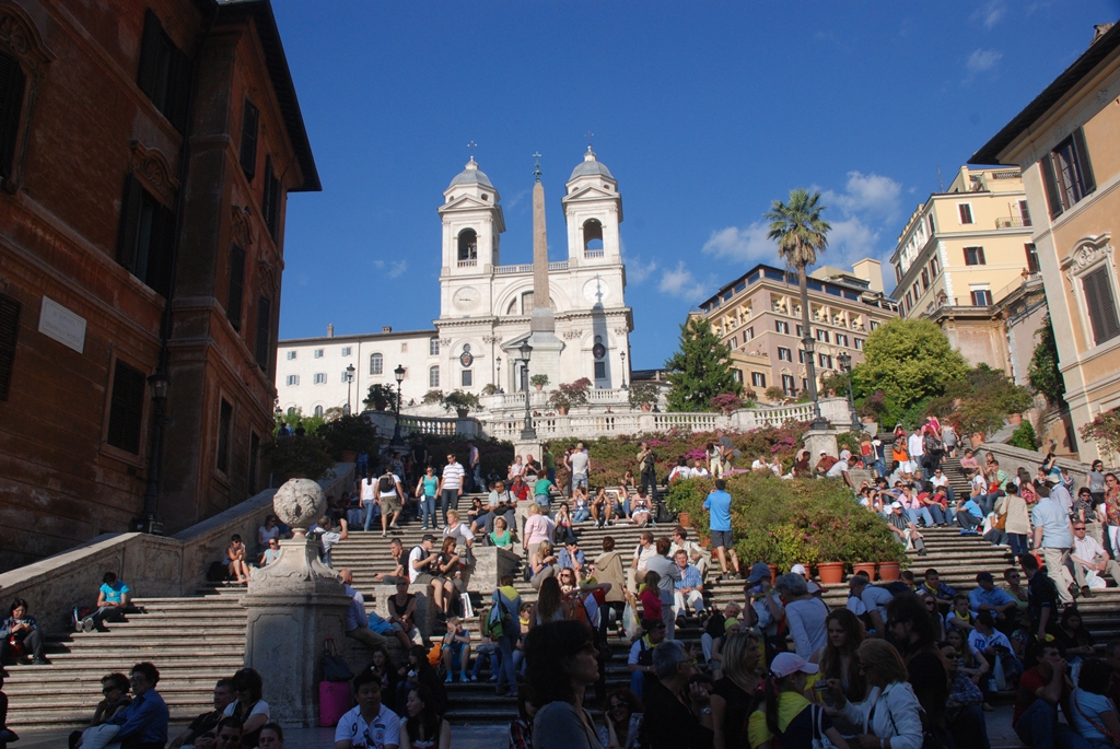 There is a nice little church on top of the Spanish Steps and we went in for a quiet look. A service was in progress as we went in and I was most surprised to see that the dresses of the nuns and the priests resembled the Arabic traditional dress (dish-dash), quite a lot. May be there is a connection somewhere.
