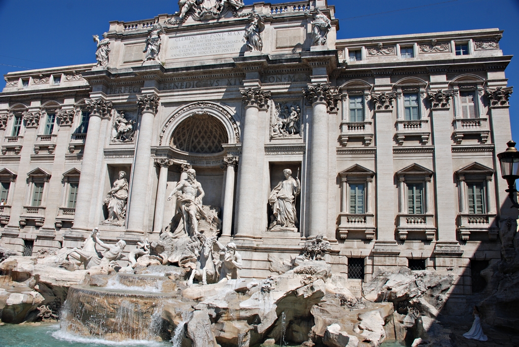 Next stop was Trevi Fountain (Fontana di Trevi), the most famous fountain in Rome. Fountains were a feature of Rome while the empire was still functioning and were fed by many aqueducts. After the fall of the empire, many of the fountains and aqueducts fell into disrepair and it was only in 15th century that several projects were started to make these functional again. Trevi Fountain gained its name from the simple fact that it is at the junction of three roads. The idea for a fountain was conceived to mark the termination point of an aqueduct that brought water to Rome. After the aqueduct was repaired, a famous sculptor of those times, Bernini, was commissioned to redo Trevi Fountain but he did not finish it as the Pope, who was the sponsor, passed away. It was later torn down and rebuilt by another architect but some of the Bernini designs are still there. The fountain is very beautiful and is a must visit item on every tourist’s list. The water looked very clean and I guess it is possibly drinkable. There is a belief that if you toss a coin into the Trevi Fountain, you will return to Rome and many coins were seen inside the fountain. I read that the total money collected from the fountain in an average day is Euro 300!
