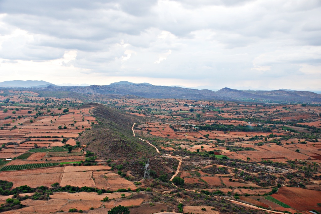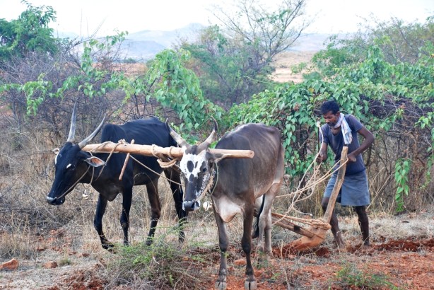 I was driving along in good cheer and stopping to take photographs once in a while. The land looked well irrigated and most of it was under cultivation. It was good to see land being put to good use and not being barren. As I stopped for one such photo break, I saw a sight that I had not seen since early childhood – a man ploughing his land using bullocks. He was kind enough to allow me to take photos of him. His name was Vasanthappa and he said he grows maize in his fields. It was quite amazing that within 50 km of one of the largest cities in one of the largest economies of the world, a man was still ploughing his land using a technique which was centuries old. I guess a tractor must have been beyond his means.