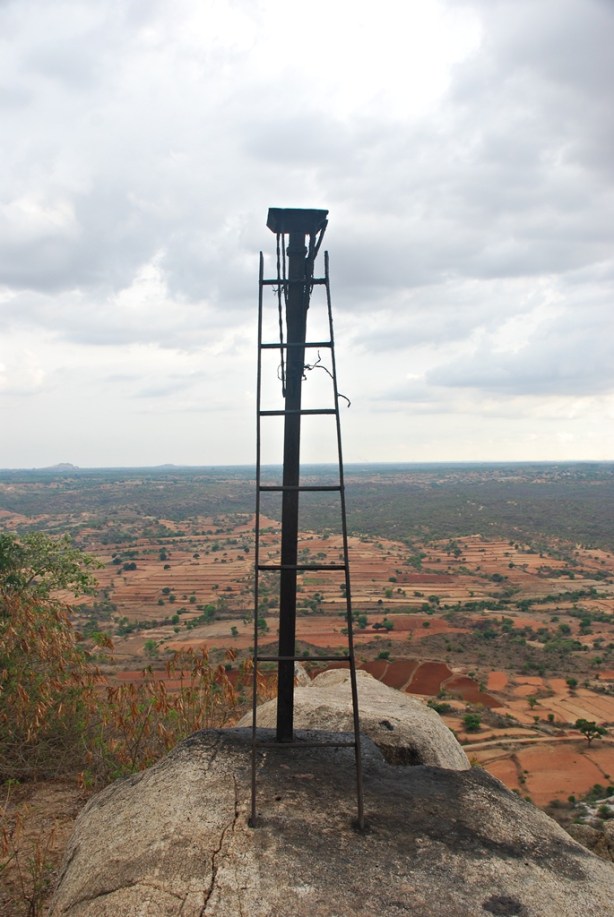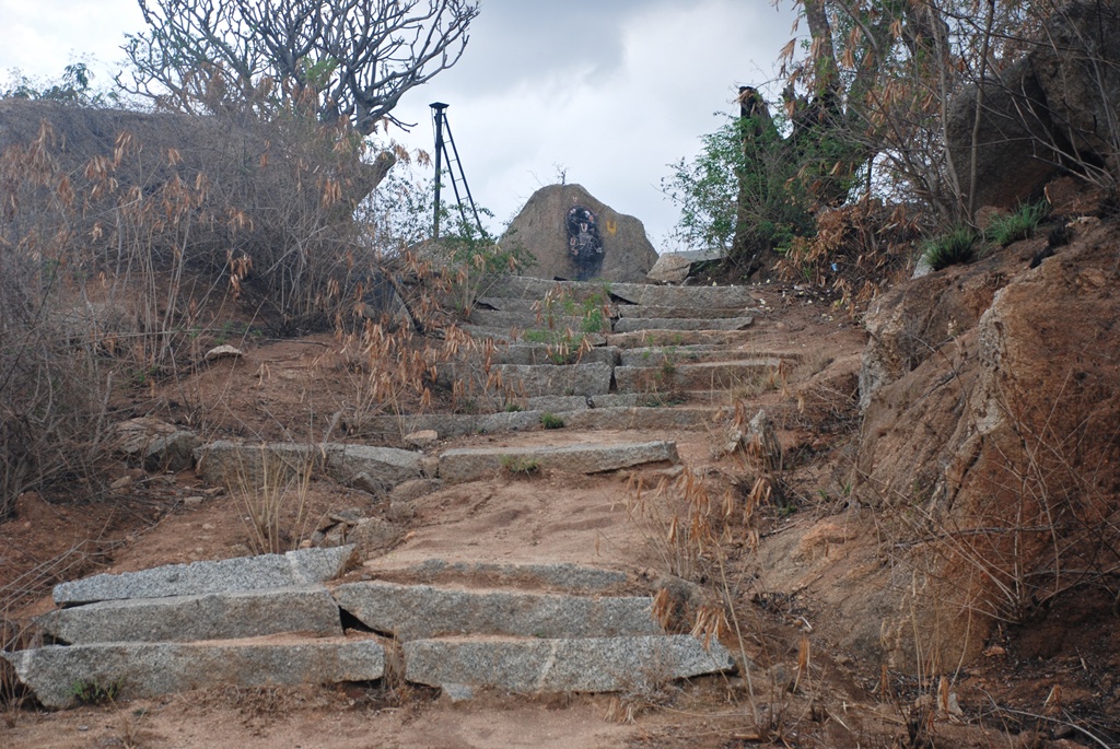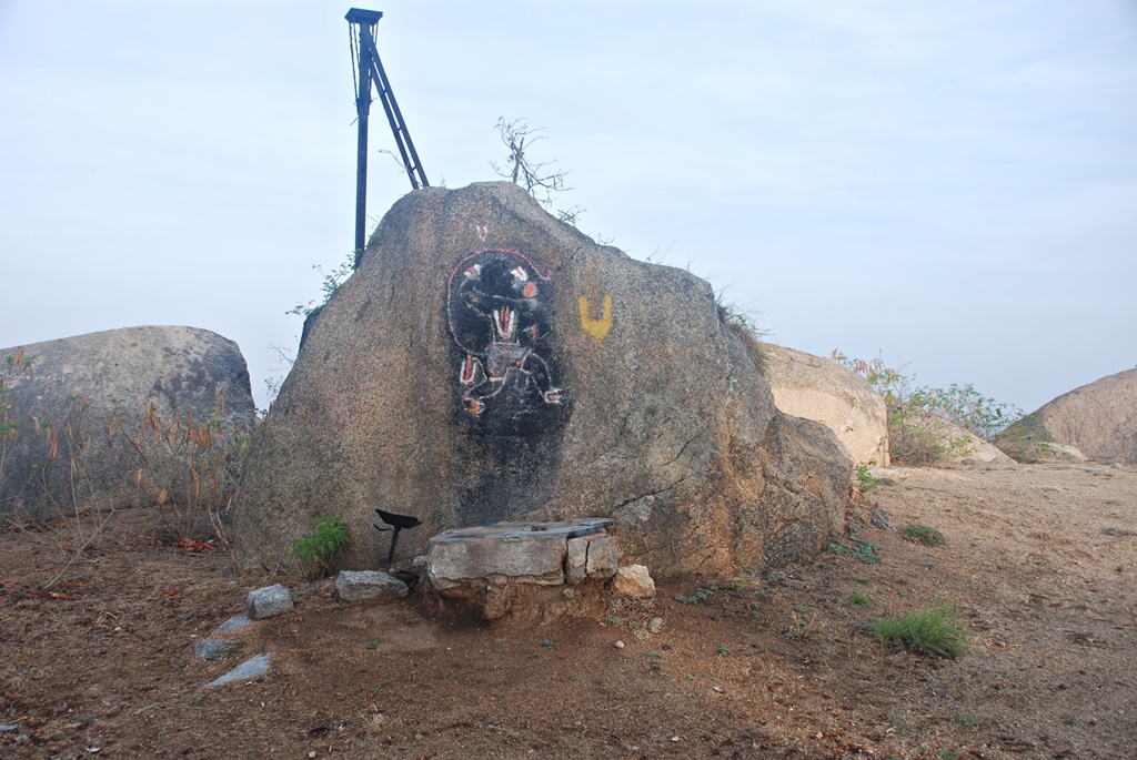 Very near the camp is a Lakshmi Narasimha temple and there is a medium size hill (about 700-800 ft high) right beside it. There was a villager standing near the temple and he told me that they had another temple right on top of the hill. He showed me a post right on the top where he said a lamp was lit on particular days. I was curious and wanted to go up the hill.