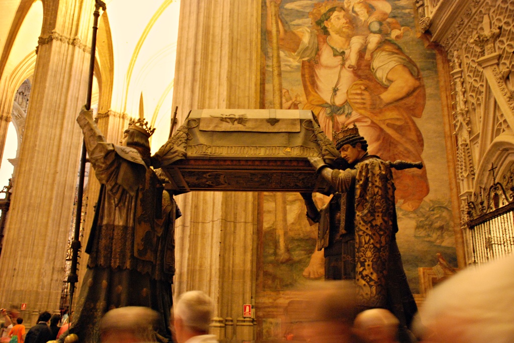 What attracted me the most was the tomb of Christopher Columbus. This tomb is supposed to contain his mortal remains though there is controversy on the subject as he was originally buried in the Dominican Republic and it is said that most of his remains are still there. The four pall bearers represent the four kingdoms of Spain – Castile, Leon, Aragon and Navarre. The significance of Columbus in Spain’s history is borne out by the fact that the Catholic Monarch, Queen Isabella herself is shown as the pall bearer representing Leon (on the front left with the oar in hand). The other pall bearer in the front holds a spear with a pomegranate, showing the fall of Granada (Granada means pomegranate in Spanish). I was very attracted to this tomb and I spent a lot of time around it. That I was standing close to a man (even if it were the remains) who was such an adventurer and visionary, was a special feeling.