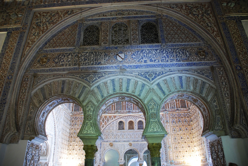 As one steps past the impressive gate, the Alcazar soars in front of the eyes in all its majesty. The façade is very Islamic as care was taken by Pedro I (Peter the First) of Castille, who rebuilt the palace. Pedro I was a Christian king who seems to have been quite an interesting personality. For starters, he seems to be referred to as Peter the Just and Peter the Cruel. The nobility and the aristocracy called him Peter the Cruel whereas the common people called him Peter the Just. Given that he lived in the Fourteenth Century and the subsequent recording of history must have been quite influenced by the nobility, I am inclined to believe that Peter must have been a king who understood the sufferings of the poor and supported them. He also seems to be the only Christian king who exhibited religious tolerance. When he rebuilt the Alcazar, he made sure that he used artisans who were proponents of Islamic architecture and he also used perishable material such as wood and plaster (supposedly, Quran reserves eternal structures for Allah). In some of the doorways, there are Arabic inscriptions that mean: “None but Allah conquers”, “Happiness and prosperity are benefits of Allah” etc. He appreciated the Islamic culture that existed in Seville at the time and it was evidenced in his dress and food. Peter also gave permissions to the Jews to build a synagogue in Toledo. I was quite impressed, especially when I contrasted this against the religious intolerance fostered by the Catholic Monarchs, who were to come later, who ushered in the black period of Spanish Inquisition. Incidentally, a friend told me later that there is still an office of the Inquisition in Seville (it is called by a different name these days).