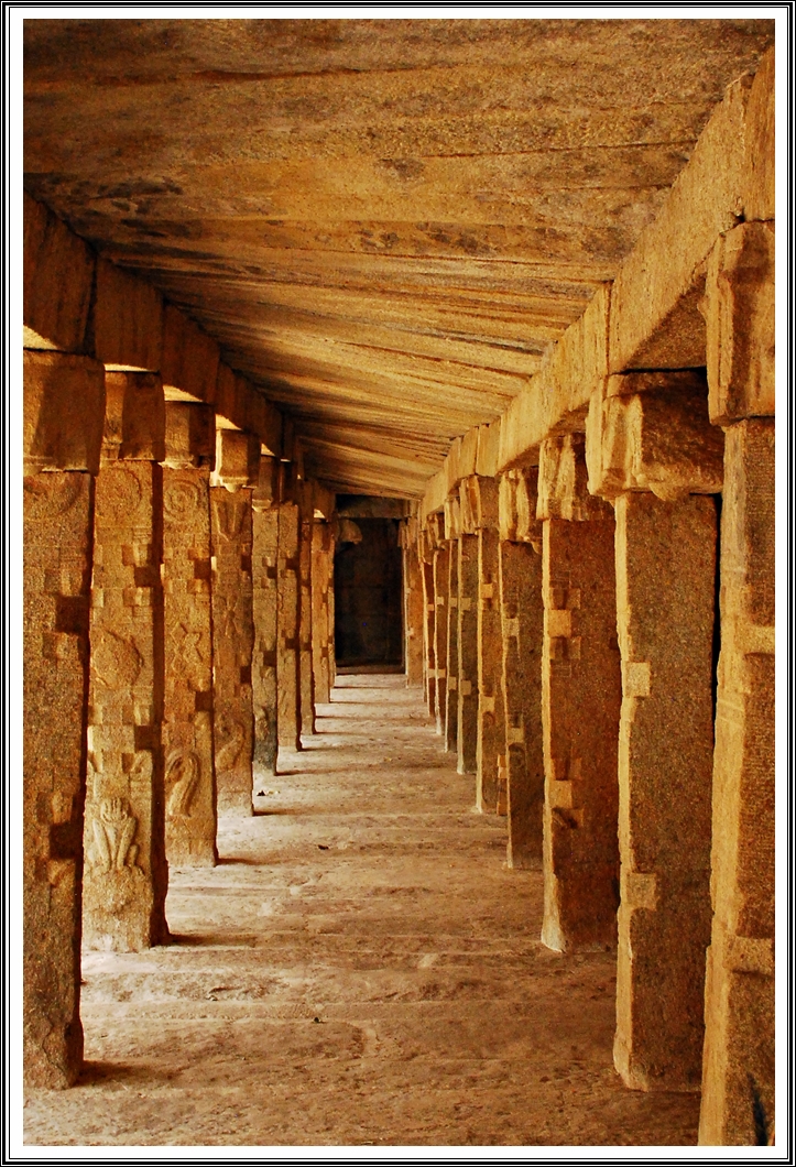 As soon as I entered, what I noticed were the long corridors that stretched on the four sides of the temple. This was where people who visited the temple stayed. Today, these long empty corridors present a nice sight with wonderfully carved stone pillars in neat rows.