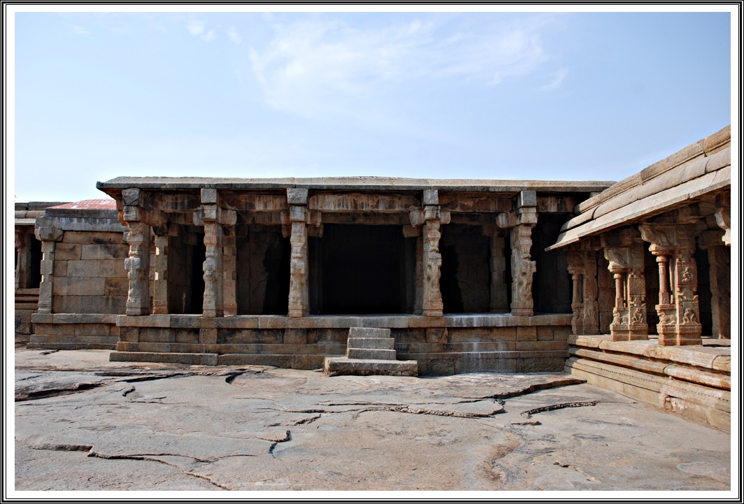 The main deity here is Veerabhadra, who was created by Shiva from locks of his hair, in anger, to slay the king Daksha – his father-in-law. Hence Veerabhadra is considered to be a god in an angry mood so, unlike in many temples, you cannot see the idol from the entry point. The door is set a bit to one side so that the angry gaze of Veerabhadra may not fall at the entrance. The temple was finished in AD 1538 and the construction was overseen by Virupanna, a Treasurer of the King Achutharaya of the Vijayanagar empire and the architect concerned was a person by name of Jakkanna Hampanna. There are three enclosures (prakaras) to the temple – the first has lodging quarters for guests and in the second is the dance hall and the innermost one houses the sanctum sanctorum. The guide told me that there were seven prakaras originally but there is no evidence of that currently.