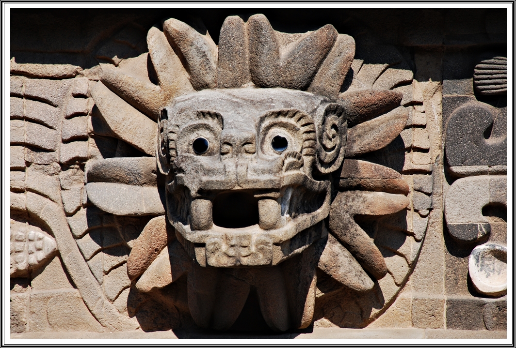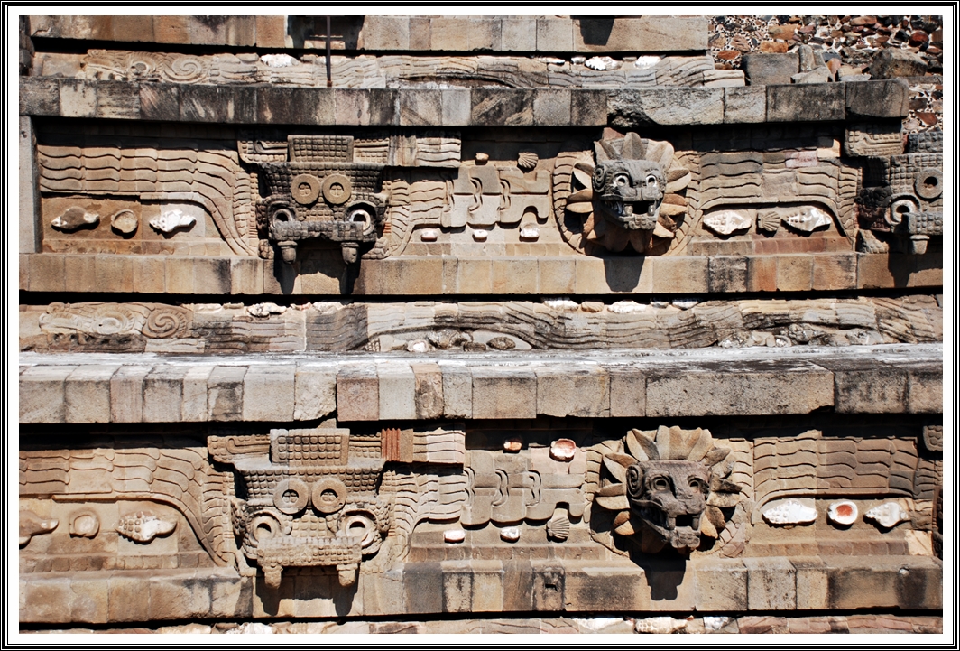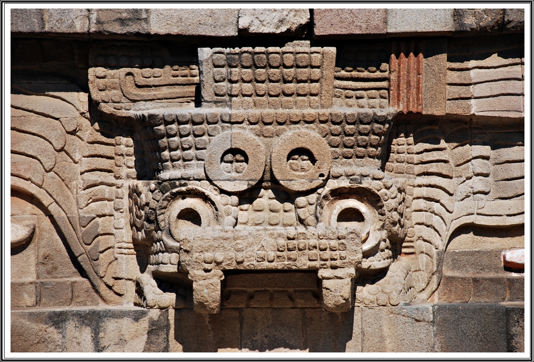 Just after the Citadel, is the most beautiful structure in Teotihuacan – the Temple of the Plumed Serpent. This is partly ruined but you can still make out some very beautiful sculptures on the side of the pyramid. Some of these looked quite exquisite and I spent a long time looking at those figures.