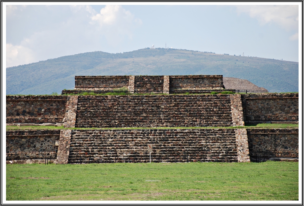 The Pyramid of the Moon is dedicated to the Great Goddess of Teotihuacan but I could not find much more details about it from the guide. It was interesting to me that there was a concept of a Goddess but all I could find was some information from the internet, which I am not reproducing here. The Pyramid of the Moon was quite beautiful and the walk leading up to this pyramid is called the Avenue of the Dead. I couldn’t get any information as to why it is called the Avenue of the Dead – it was lined with small pyramids with square platforms at the top on either side.