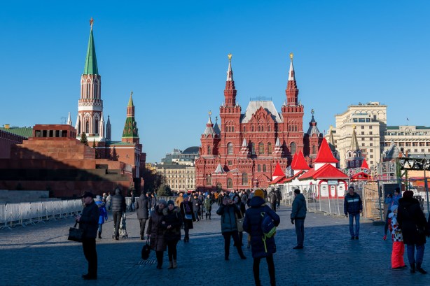 The next day morning, I decided to visit one of the most popular monuments in Russia – Lenin’s Mausoleum. It seems this monument attracts the highest number of visitors in a year. Lenin’s body has been embalmed and displayed here since his death in 1924; except for a brief period during the Second World War when the body was moved to a city in Siberia as it was feared that the Germans might capture Moscow. The mausoleum stands on one side of the Red Square; the square, squat red marble tiled building on the left side of the image below. When I arrived, there was a queue waiting for the museum to be opened; Mercury had fallen below zero and it was extremely cold, with a wicked wind, but people waited patiently.
