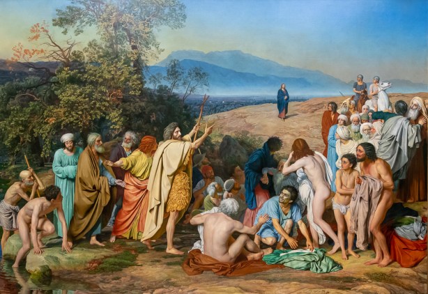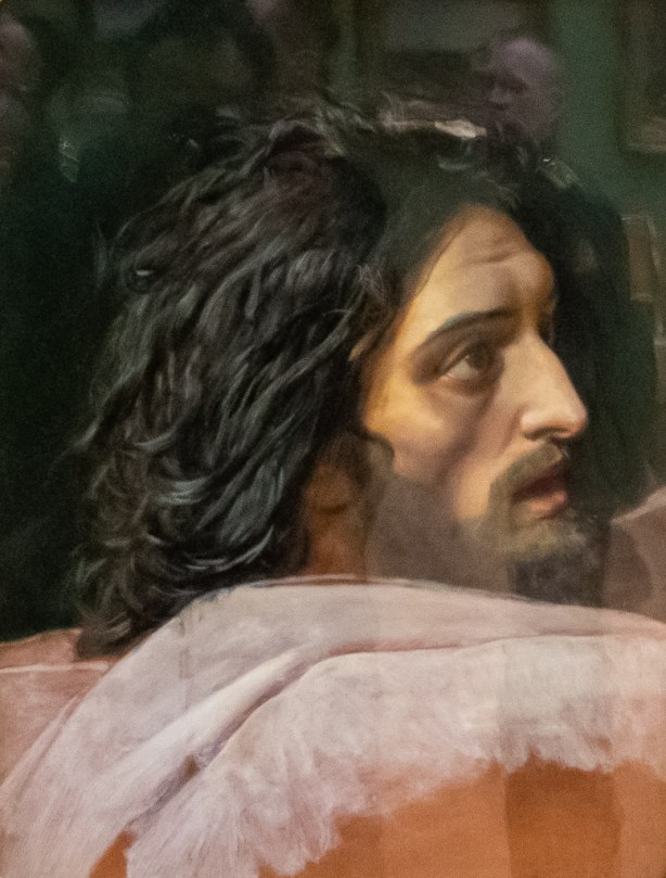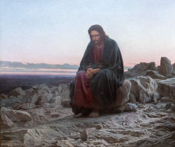 This painting “Christ in the Wilderness” by Ivan Kramskoi immediately catches the eye because of the very desolate nature. I quote from the description provided by the museum: “The artist looks upon the Sacred history in the context of the issues of his day. Gospel themes and images served at the time as a way to express ideas of what was good and just. Christ’s personality was understood as the “perfect human being” embodiment; the life journey of a progressive person was a reflection of His earthly path. Kramskoi wrote: “…There is a moment in the life of every human being, who is created in the image of God however slightly or greatly, when they are in a quandary – whether to take the ruble and deny the Lord or not to yield a single step to the evil.” The painting took on a topical nature thanks to the resemblance of Christ’s pose on Kramskoi’s canvas to the pose of Fyodor Dostoevsky in the famous portrait by V.G. Perov. Both paintings were made in 1872 and both were shown at the very same travelling exhibition. Eternal, panhuman problems are the central theme of the painting.”