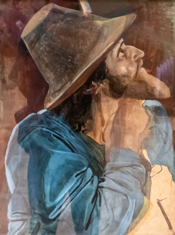 This painting is titled “The appearance of Christ to the people” by the artist Alexander Ivanov. It is a huge work measuring 5.40m x 7.50m and this was the most important work in the life of Ivanov. It took him twenty years to finish this painting and he died within a few months of finishing the painting. John the Baptist is the central figure in the painting (wearing an animal skin) and points to the Christ who appears in the distance. Ivanov has painted himself into the portrait as the wanderer with a staff, sitting right in front of John the Baptist. The artist made several small works, probably as studies for the painting, and these were also exhibited at the museum.