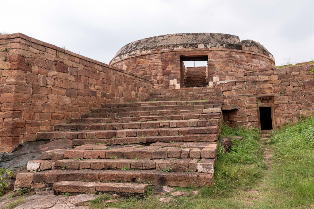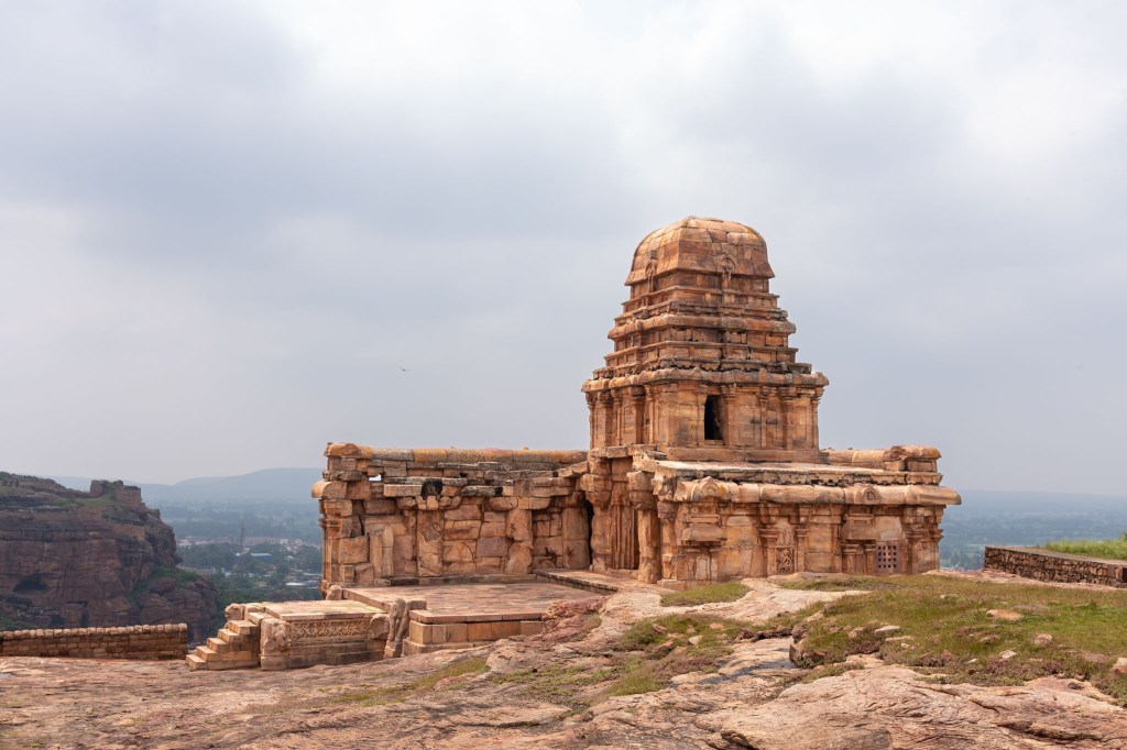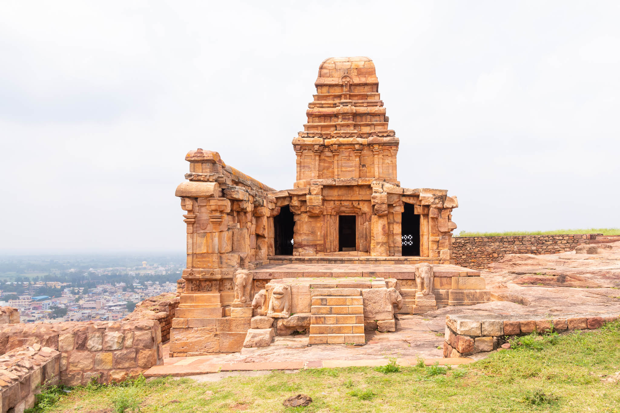 Next stop was the Fort. This was the abode of the Chalukyas and was built in 542 AD. It was destroyed by the Pallavas when they defeated the Chalukyas in battle. When Badami came under the rule of Tipu Sultan, he rebuilt some of the fortifications. You can walk up the hill using a paved pathway that has many steps. It is not a difficult climb at all and as I mentioned earlier, ASI has maintained it quite well. There are not many buildings left standing and the two important ones are two temples – Lower Shivalaya and Upper Shivalaya. The idol of Vatapi Ganapati was originally located in Lower Shivalaya before the Pallavas carried it away.