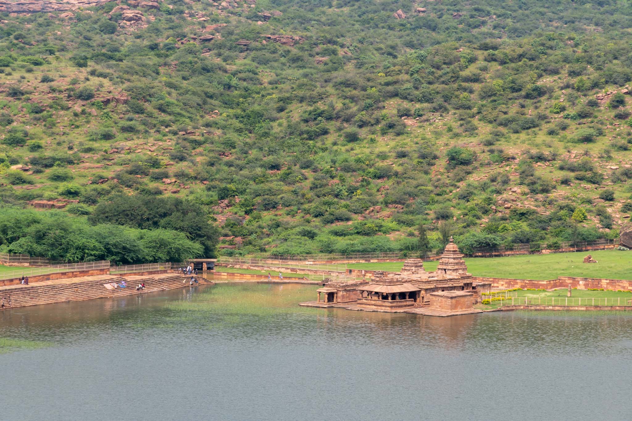 Right next to the Caves is a huge lake called Agastya Lake and this was probably the water source for the capital. The lake is named after Sage Agasthya and there is a myth that the lake was brought to Earth from the heavens by Garuda and hence the water has the power to cure illnesses and cleanse all sins. Wiki says that the lake is man-made and is from the 7th Century. The lake is used quite a lot by the citizens for their everyday life and I could see many people bathing and washing clothes. From the Caves, you get a beautiful view of the Bhoothnath Temple on the shores of the lake and the Fort on top of the hill.