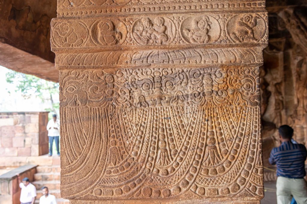 There is also one statue that is a kind of social commentary. Here a couple is shown in an inebriated state, particularly the lady. She has had too much to drink, her dress is falling off and she is vomiting, with a dog eating the vomit. This statue has been kind of damaged a bit and so I thought the guide was making the story up till I went to Aihole and heard the very same story from another guide there and saw the same work on a pillar inside a temple; that one is much clearer and the story is quite evident. This just goes to show that women drinking alcohol was common in ancient India and it is indeed strange and comical that the self-declared custodians of Indian culture are completely scandalised if they hear of any woman having a drink in modern India. I had read somewhere that what these fellows are peddling as Indian moral values are actually Victorian values and morality and I am inclined to believe that, given their general ignorance and biased interpretation of history.