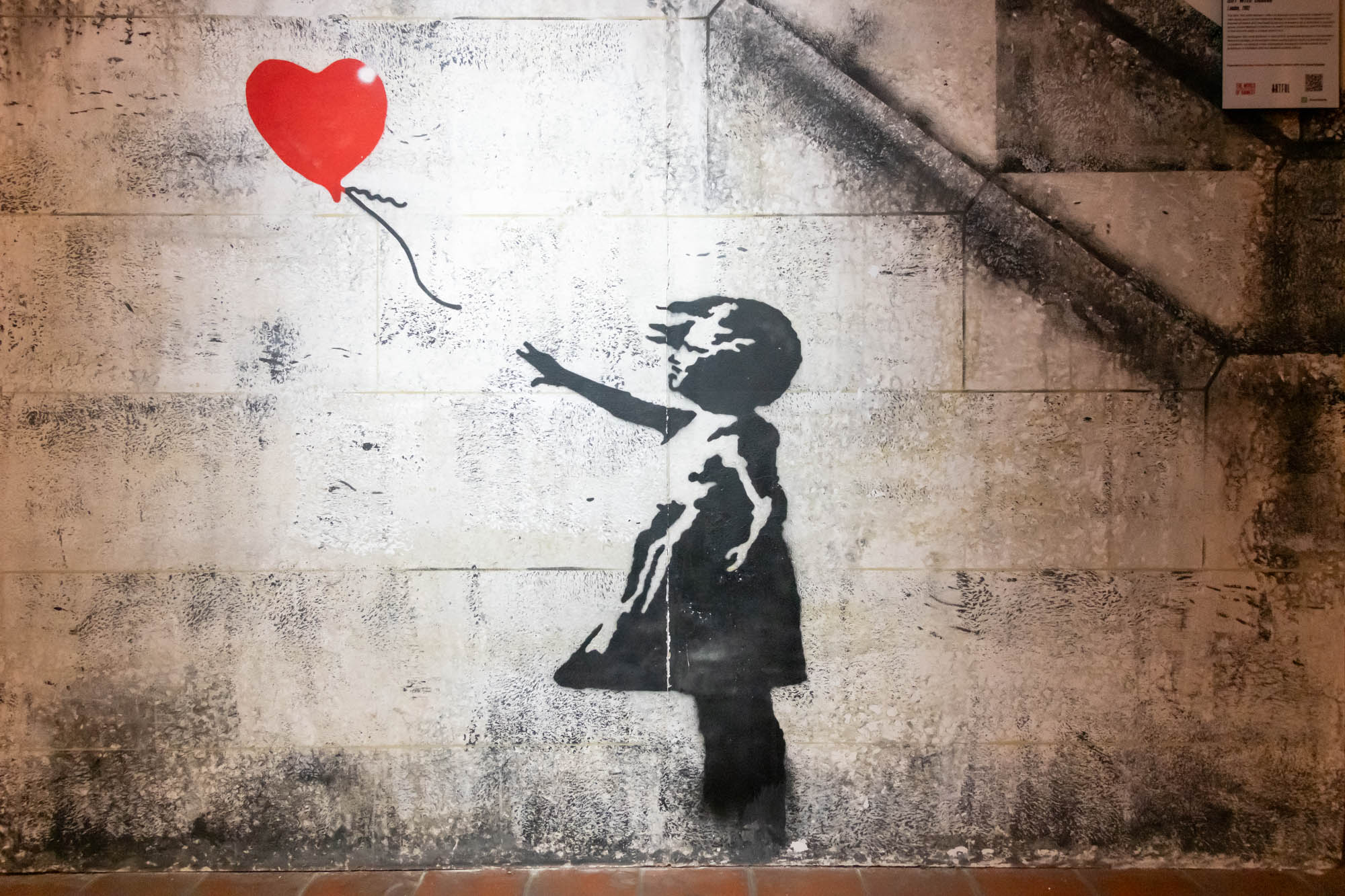 “Girl with Balloon” is one of Banksy’s most known works and was painted on the stairs near London’s Waterloo Bridge in 2002. This work announced Banksy’s arrival into the world of graffiti, and he has been instrumental in increasing the power and impact of the medium.