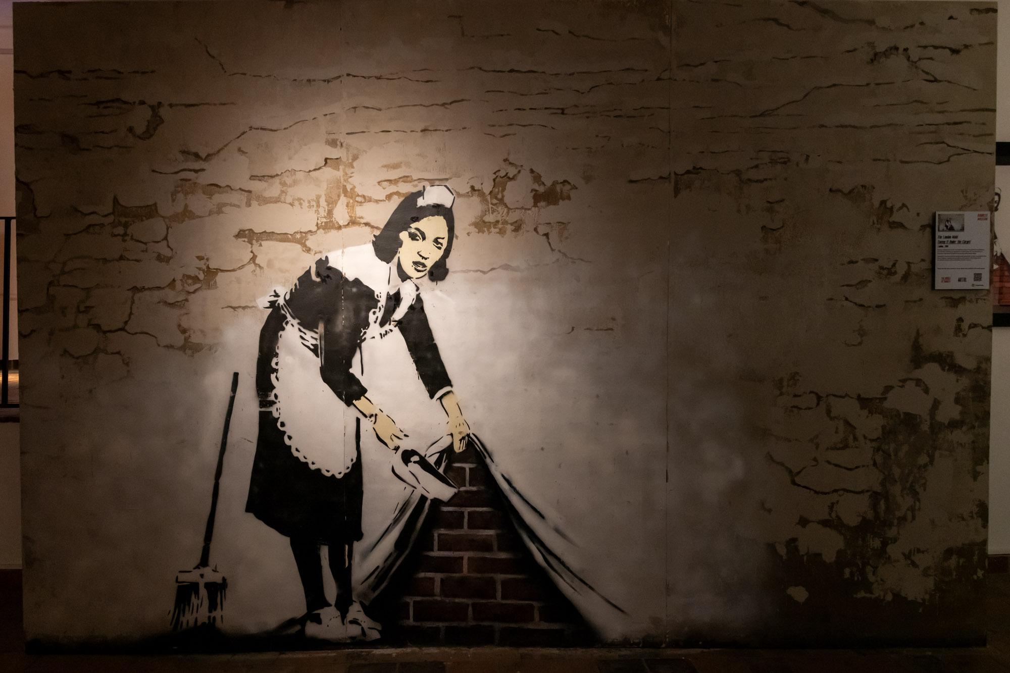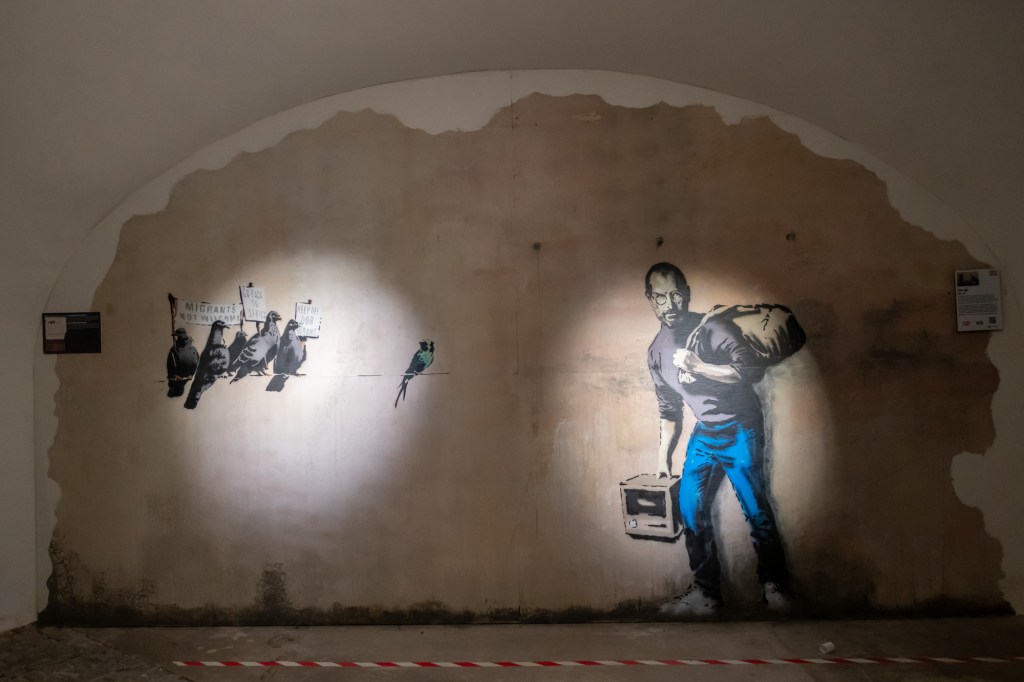 This artwork was executed in a refugee camp called “The Jungle” that existed in Calais in France between January 2015 to October 2016. In this mural, which was unveiled on 11 December 2015, Steve Jobs is shown carrying a typical black garbage bag as is often carried by refugees, slung over his shoulder and the original Apple computer in this other hand. At a time when the refugee crisis was at its peak with many countries looking down upon immigrants, Banksy was reminding the world that the founder of the most valuable company in the world, was himself the son for an immigrant from Syria. The sad truth is that this artwork is even more relevant today, than it was in 2015.
