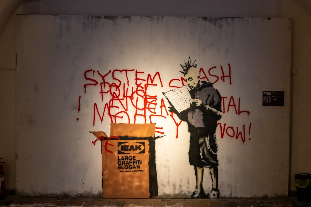 I was wandering around Prague yesterday when I stumbled upon the Banksy Museum (The World of Banksy), on my way to see the rotating Kafka head. A museum for the works of Banksy had never entered my imagination as it feels like an oxymoron. This is housed in a 15th century church and on the doorway, it is mentioned: “Just like Banksy usually presents his art at unusual places, our exhibition also takes place at an unusual location – a church right in the heart of Prague. Czech priest and church reformer Jan Hus used to preach here in the 15th century. The church and adjacent monastery were later disestablished during the reforms of Emperor Joseph II in the 18th century. In its most recent history, the church building served as a warehouse and a nightclub. Now, after centuries, it finally hosts another reformer – Banksy!”. I had to go in!