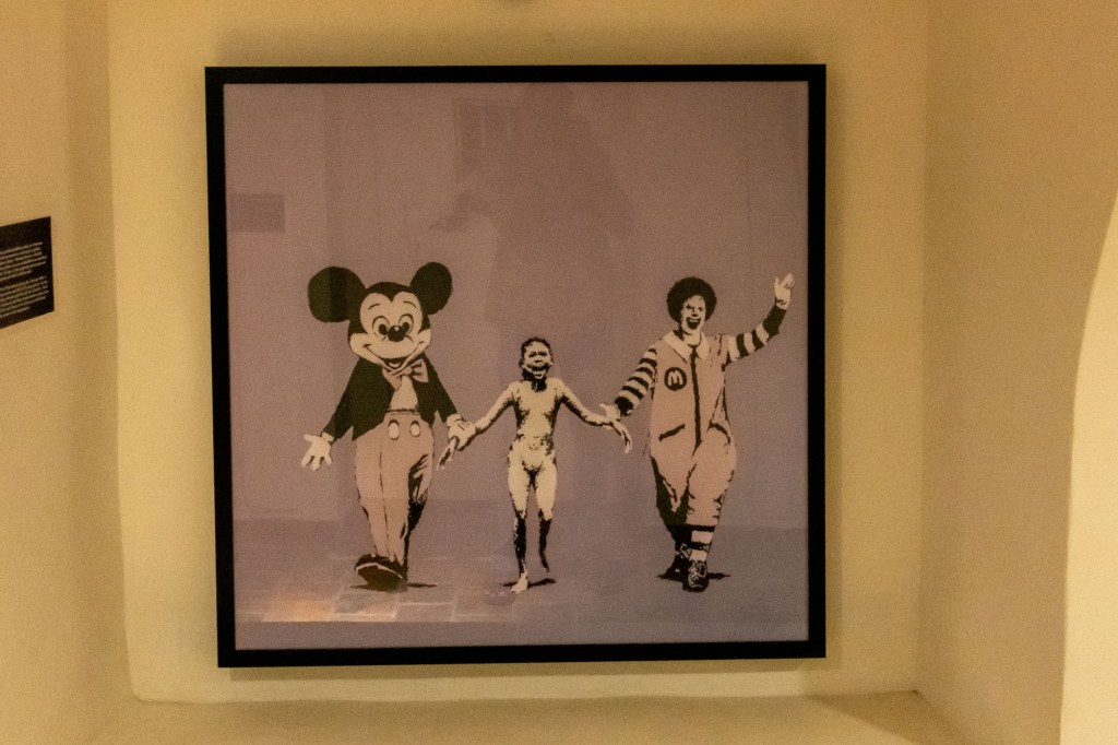 Oh! I remember seeing the photograph of that naked crying girl at the War Remnants Museum in Vietnam — such a haunting image. Seeing figures like the McDonald’s clown and Mickey Mouse in that context feels even more disturbing.