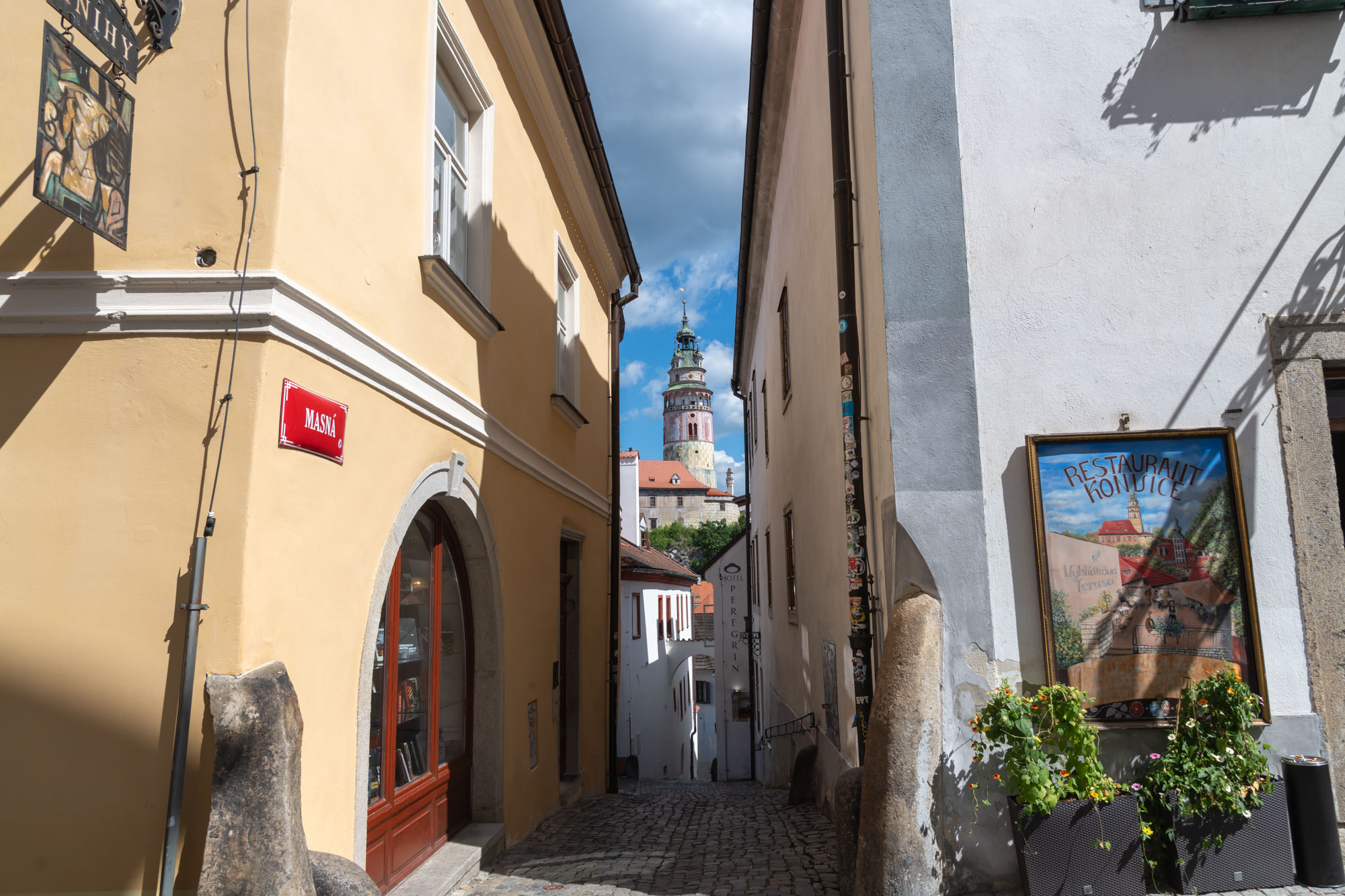 As you walk into the cobble stone paved old town of Český Krumlov, you get a view of the castle tower and from then on, you are in love with this little town!