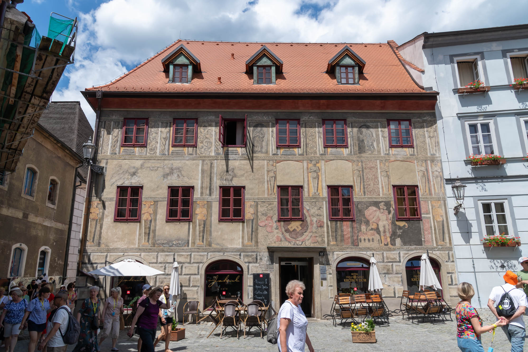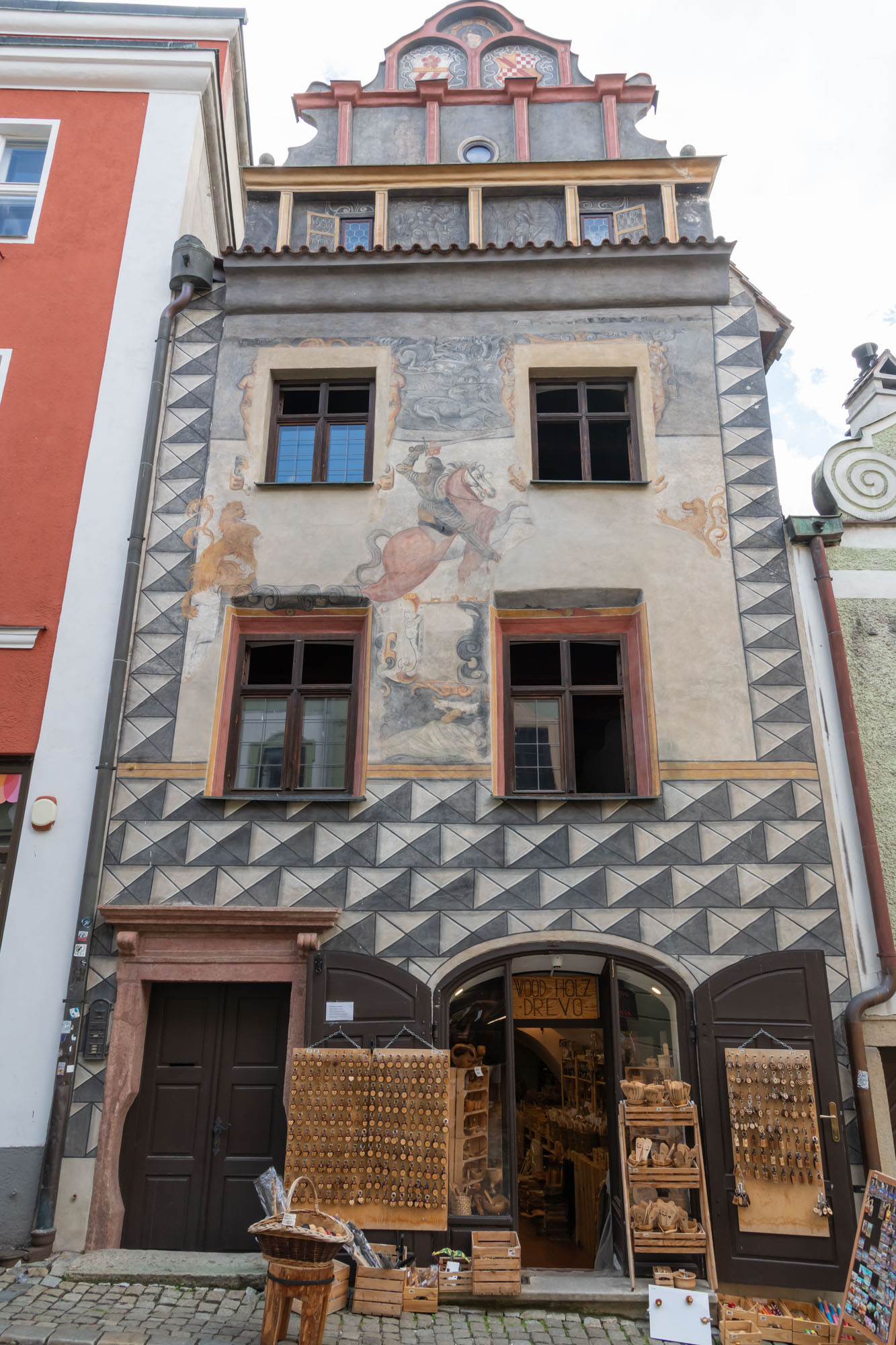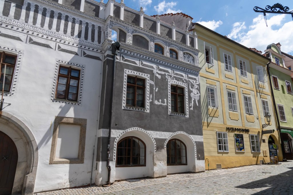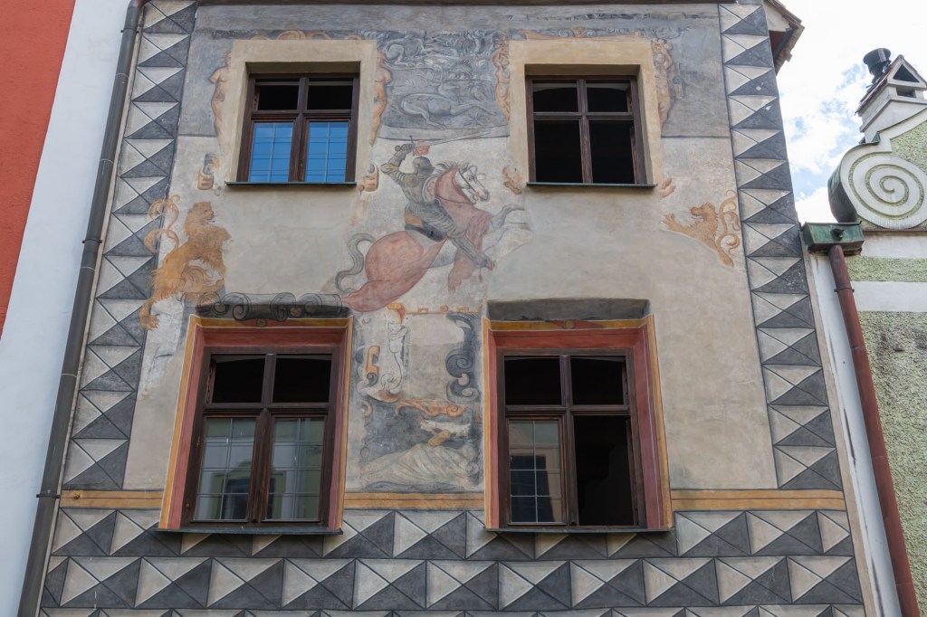 The whole town was rebuilt in the Renaissance style in the 16th Century by one of the most prominent members of the Rosenberg family – William. He was very much in love with Renaissance and everything connected with it. It seems he also brought a trumpet player from Italy and the trumpet player has been reproduced on the wall of one of the buildings in town.