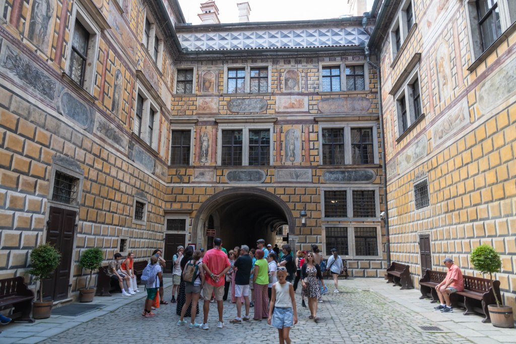 As mentioned, Český Krumlov lost its sheen during the Communist times and the buildings were not maintained properly. After the gold mines ran out, graphite was discovered, and pencil factories were functioning in the area (they still are). After the formation of Czech Republic in 1992, UNESCO stepped in to help revive the buildings and the town became a very popular tourist destination and tourism provides sustenance for the town now. However, it also seems to have brought its own tension between locals and the effects of tourism. I could sense a level of bitterness in the comments of our guide, who said it is impossible for locals to live in Český Krumlov now, as everything has become more expensive because of tourism and UNESCO has so many stipulations that they cannot make even very minor modifications to their houses to make them more comfortable. I have seen such tension in other places as well and tourism often has a very disastrous effect on locals, while it also helps their economy – the balance is very fine and difficult.