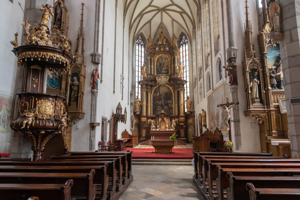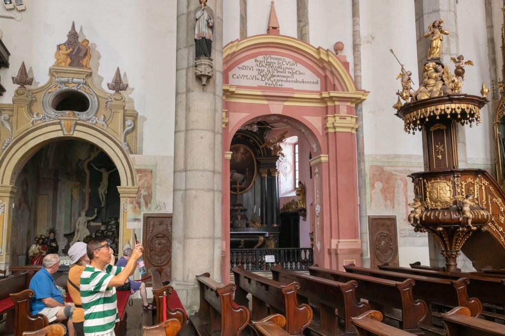 The St. Vitus Church in Český Krumlov dates back to the 14th century though the present building is from the 15th century. Since it stands on a narrow street, I could not get a proper picture of it.